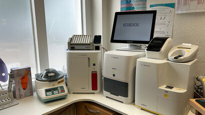 In unserem Labor mit den modernsten Untersuchungsgeräten können Blut-, Harn- sowie Kotproben sofort untersucht werden. Auch Abstriche und Feinnadelaspirationen aus Geweben können vor Ort beurteilt werden. Bei speziellen labordiagnostischen Untersuchungen arbeiten wir mit einem veterinärmedizinischen Labor zusammen, das uns in kürzester Zeit die angeforderten Untersuchungen qualifiziert durchführt und die Ergebnisse elektronisch übermittelt.